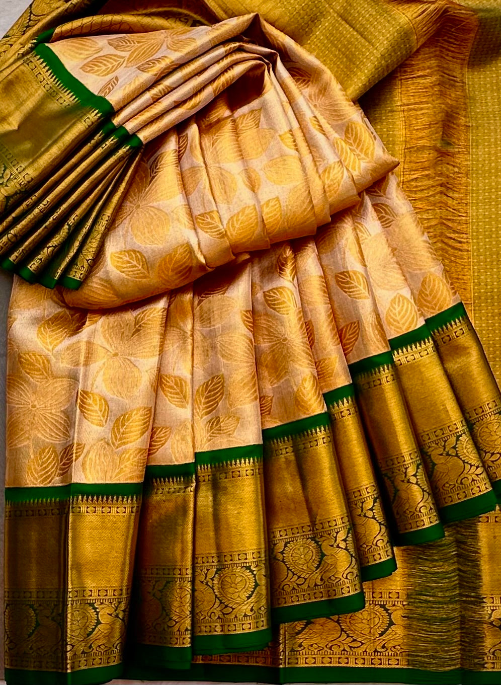 METHI YELLOW ND PEACH BANARAS TISSUE FANCY