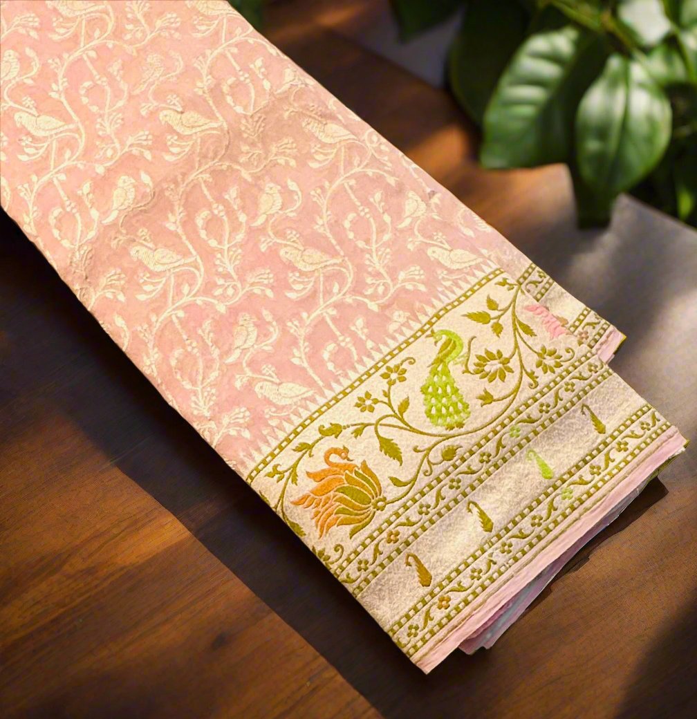 BABY PINK BANARAS PURE GORGETTE SAREE