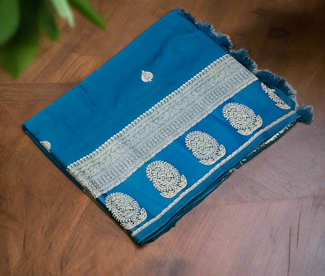 METALLIC BLUE BANARAS CRAPE