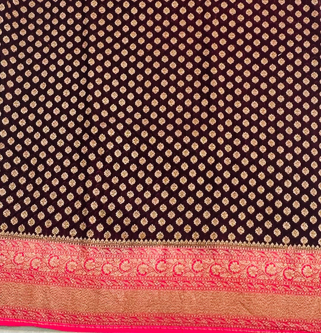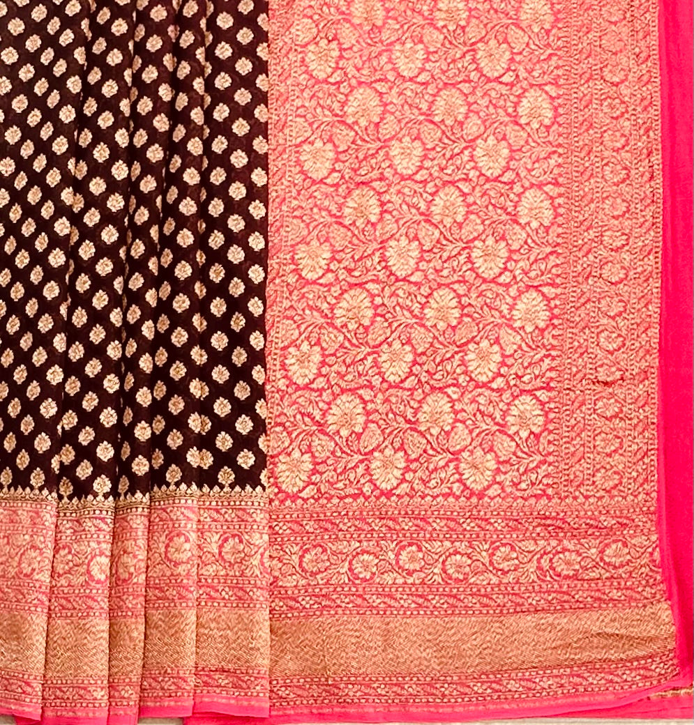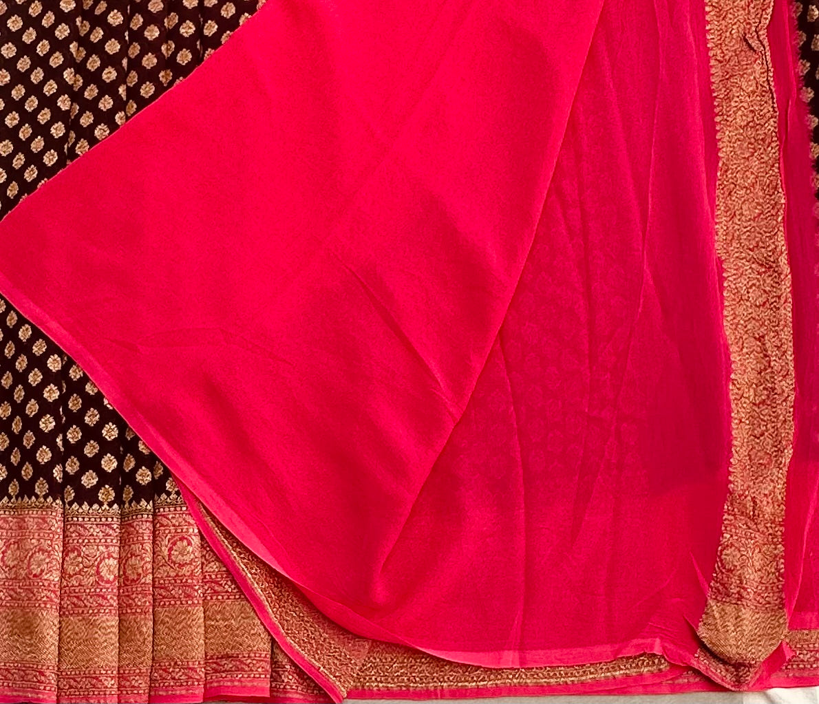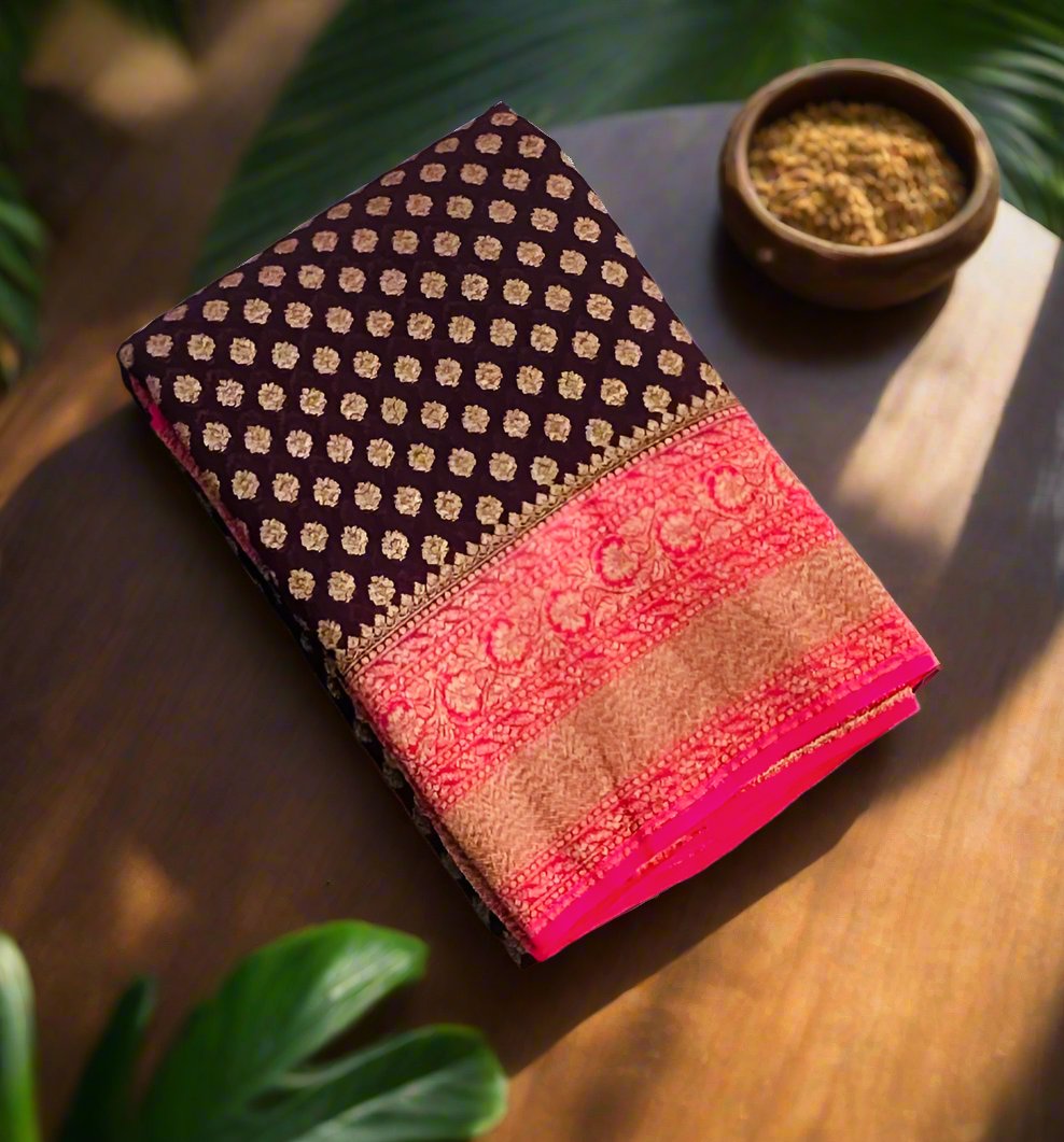BROWN ND PINK BANARAS PURE KADDI GORGETTE