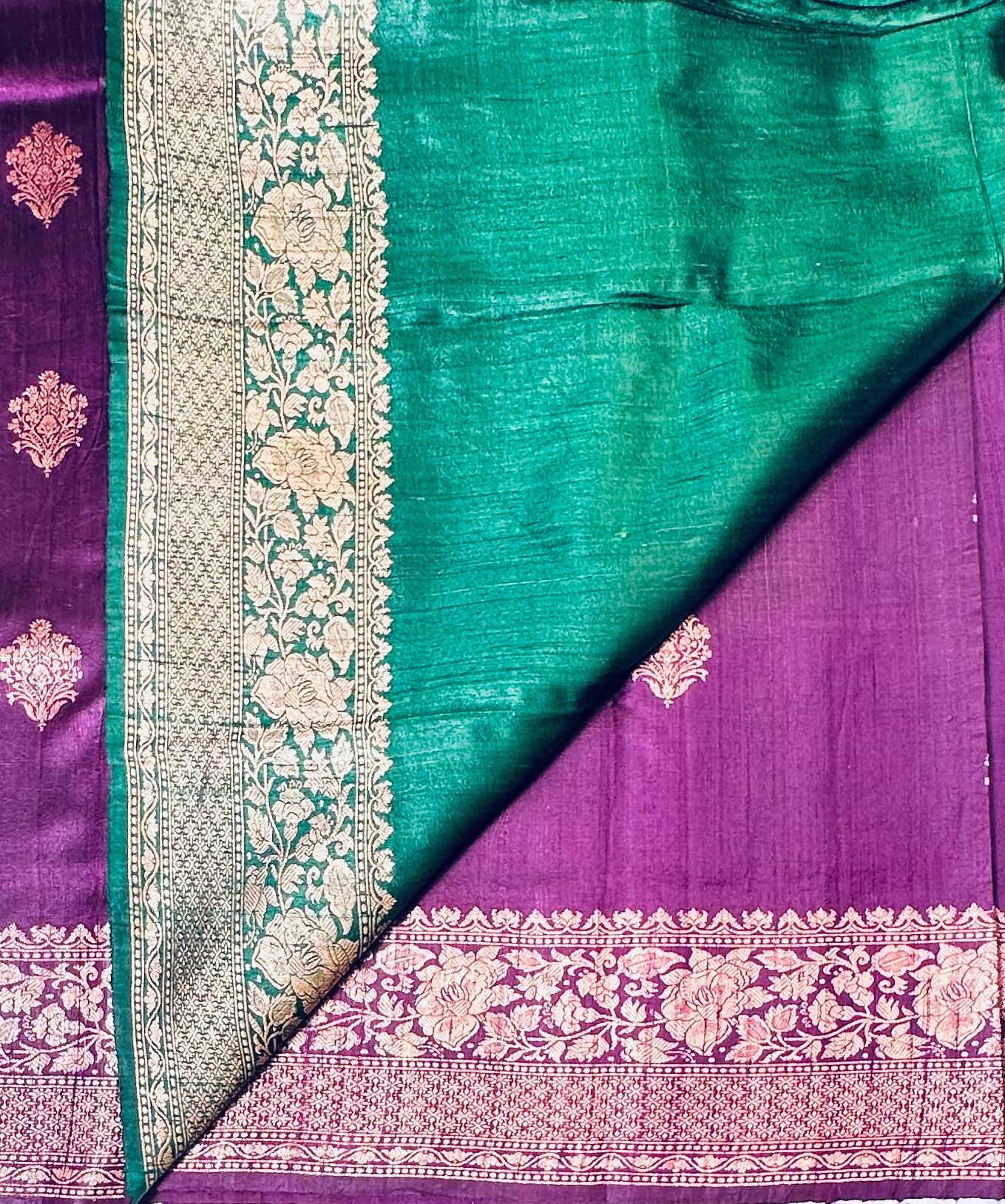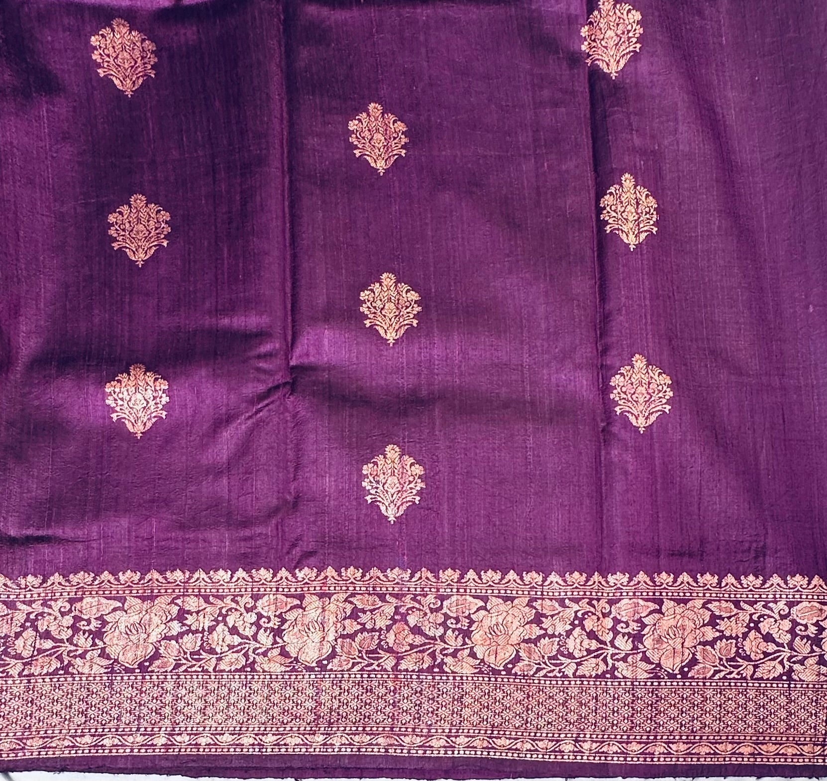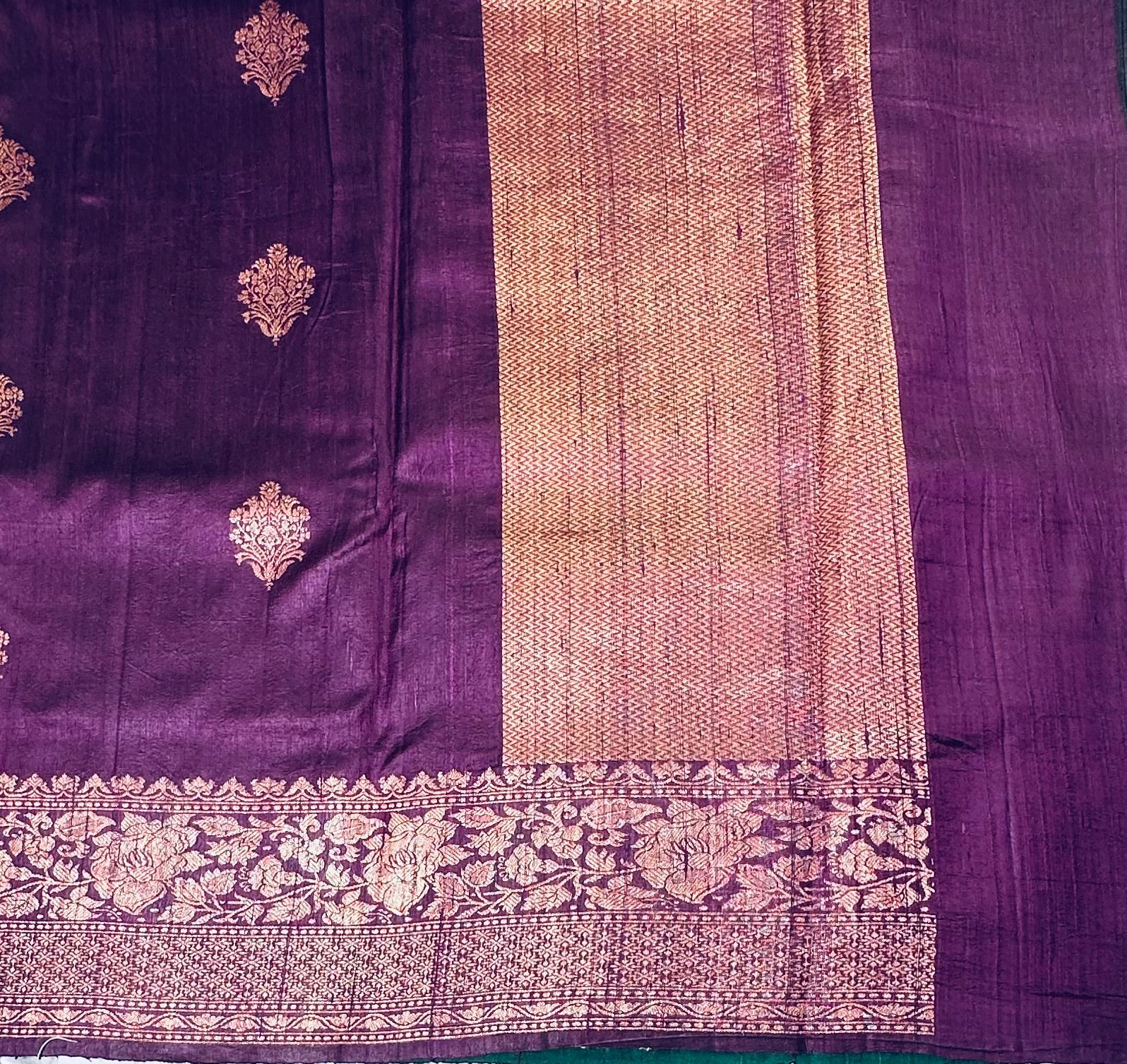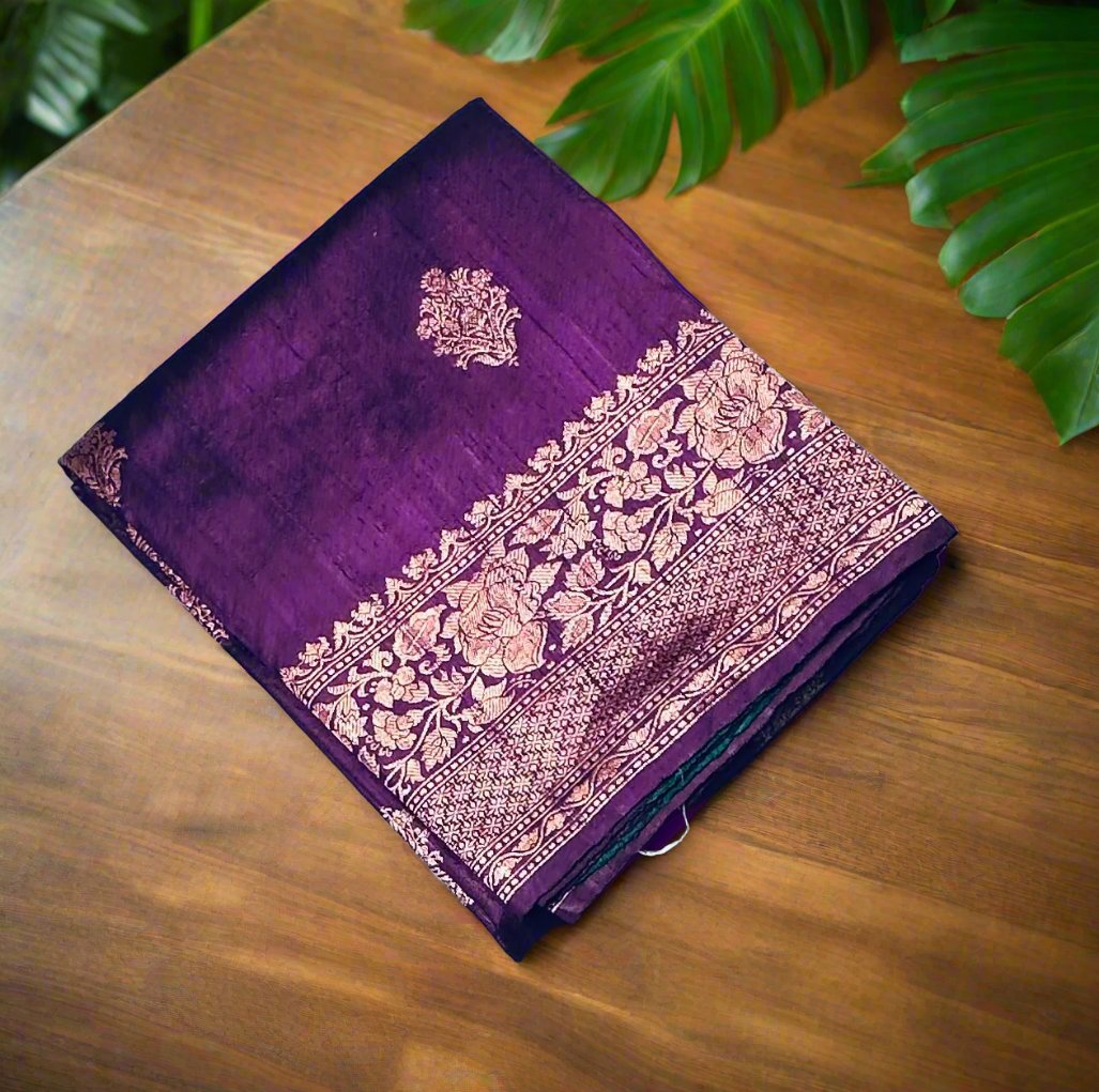 DARK PURPLE BANARAS PURE RAW SILK SAREE