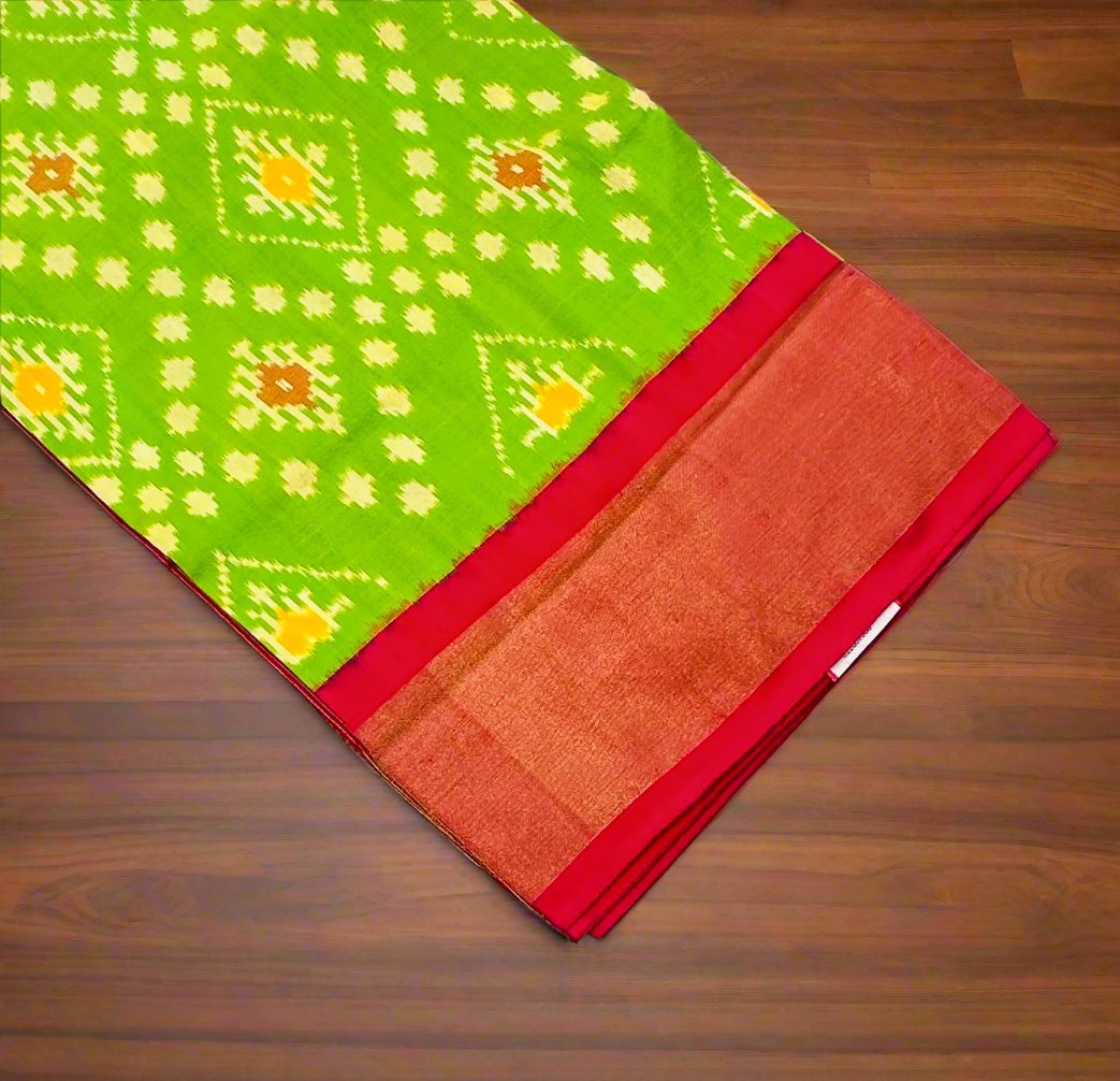 PARROT GREEN POCHAMPALLY SILK ( IKKAT)