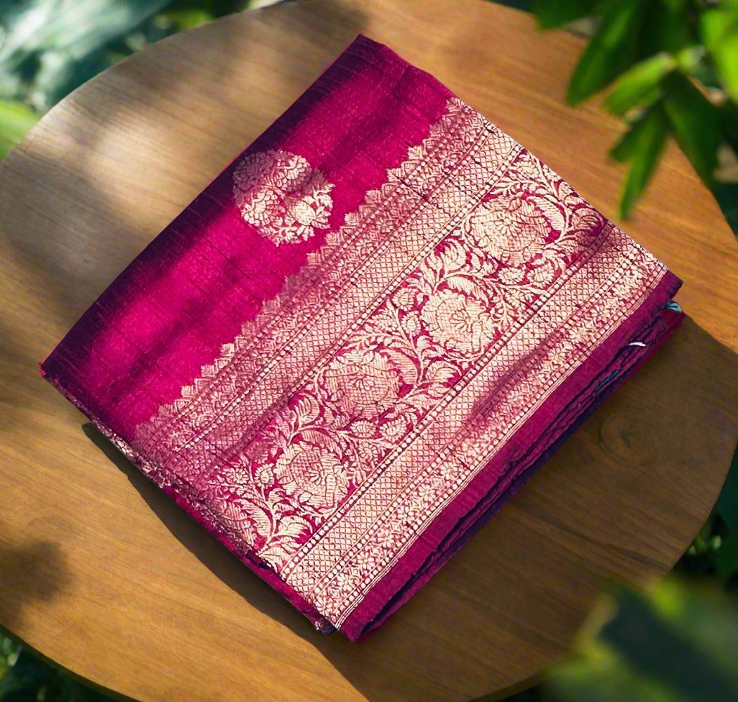 MAROON ND BLUE BANARAS PURE RAW SILK SAREE
