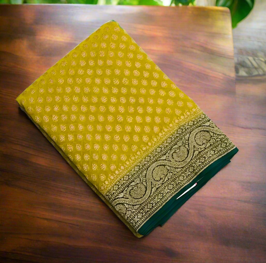 MEHENDI GREEN BANARAS PURE KADDI GORGETTE
