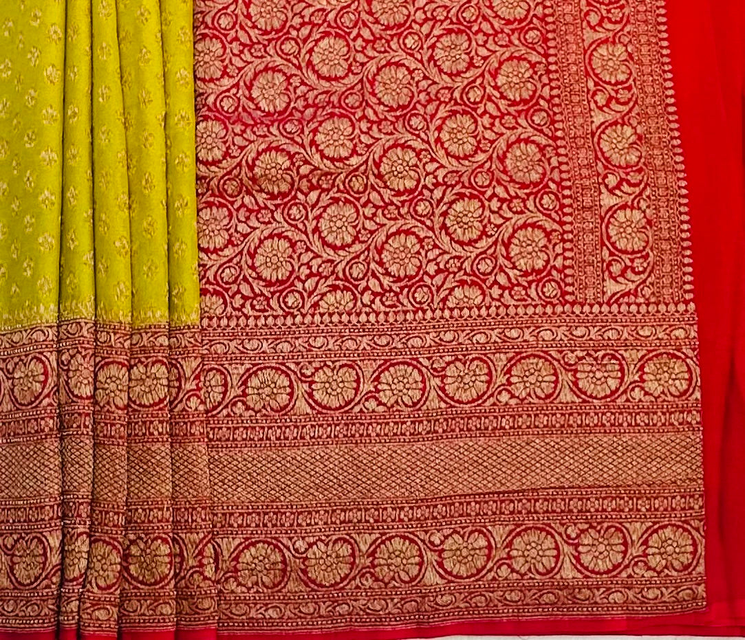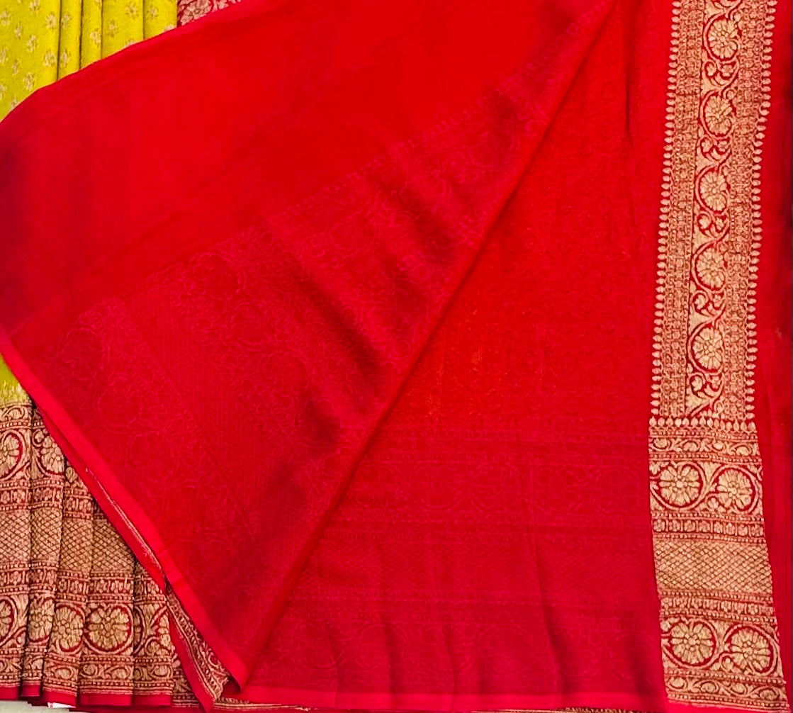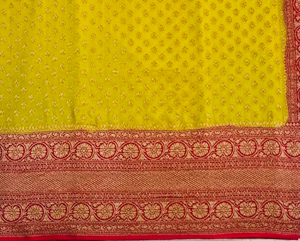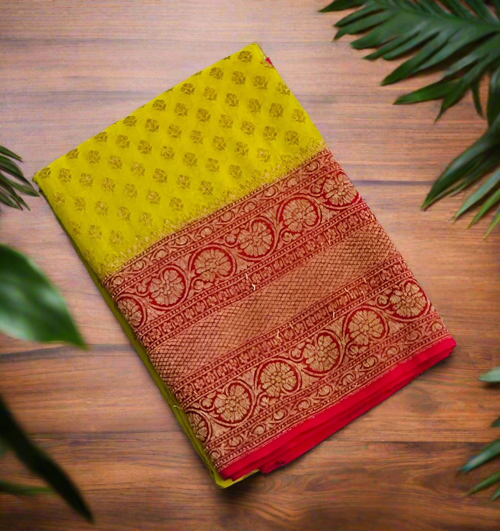 MEHENDI YELLOW BANARAS PURE KADDI GORGETTE