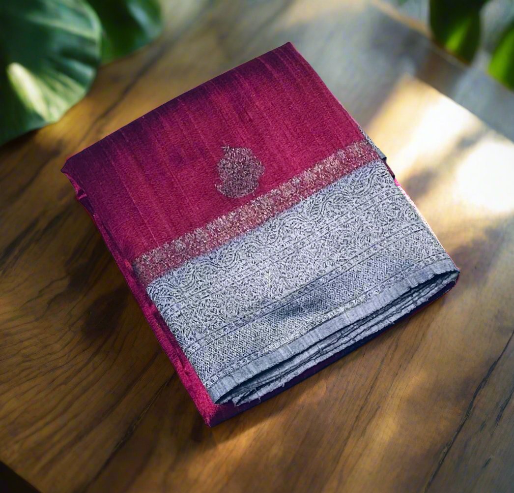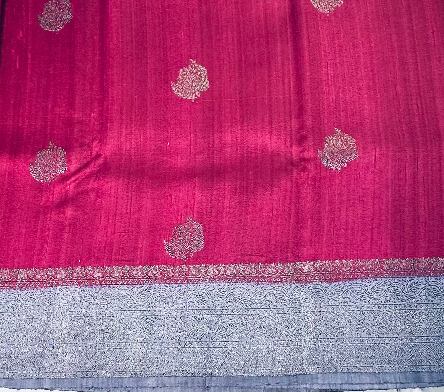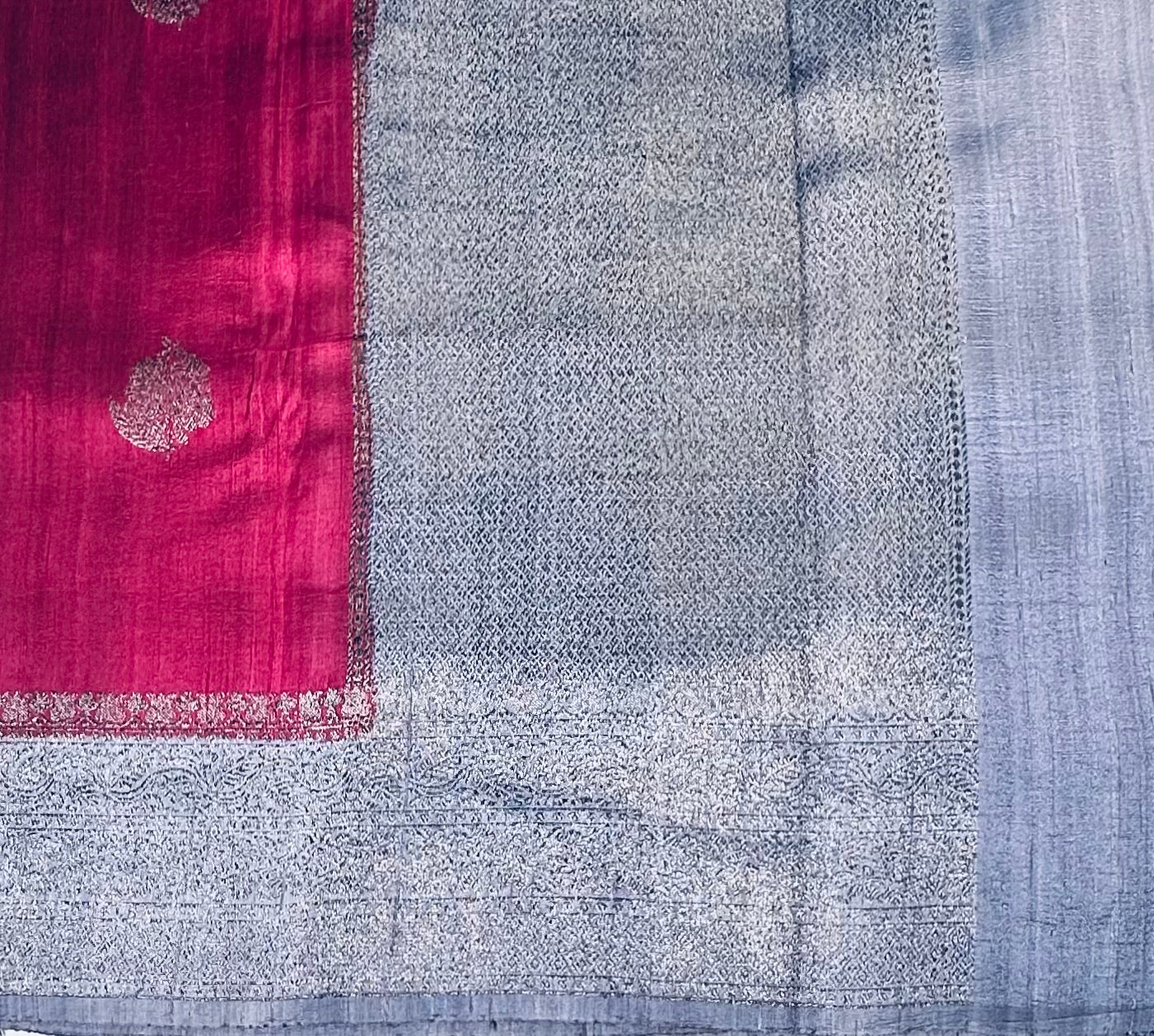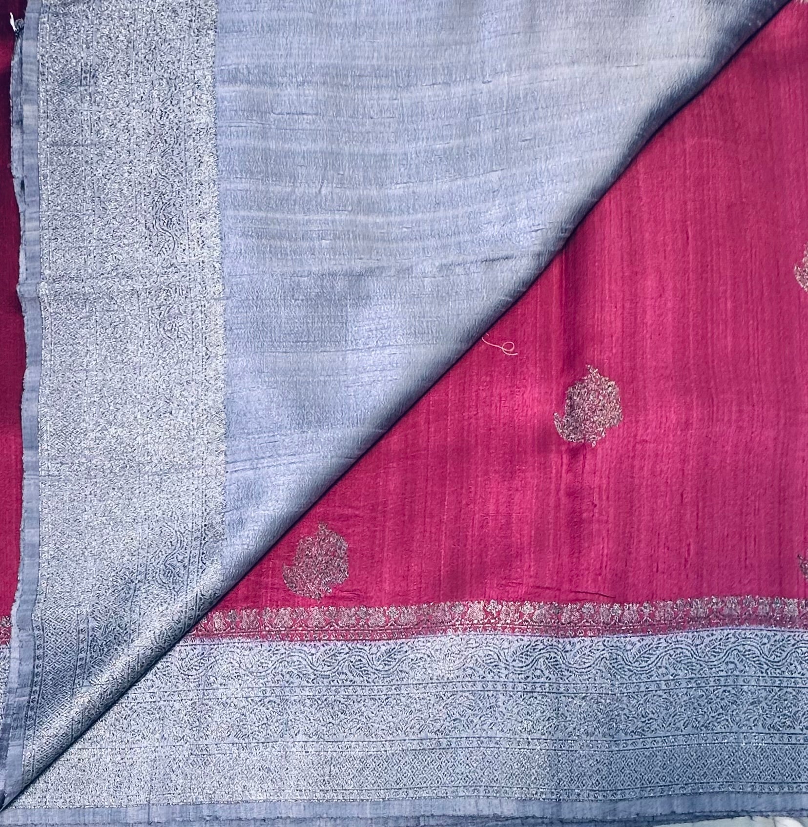 METALLIC PINK ND GREY BANARAS PURE RAW SILK SAREE