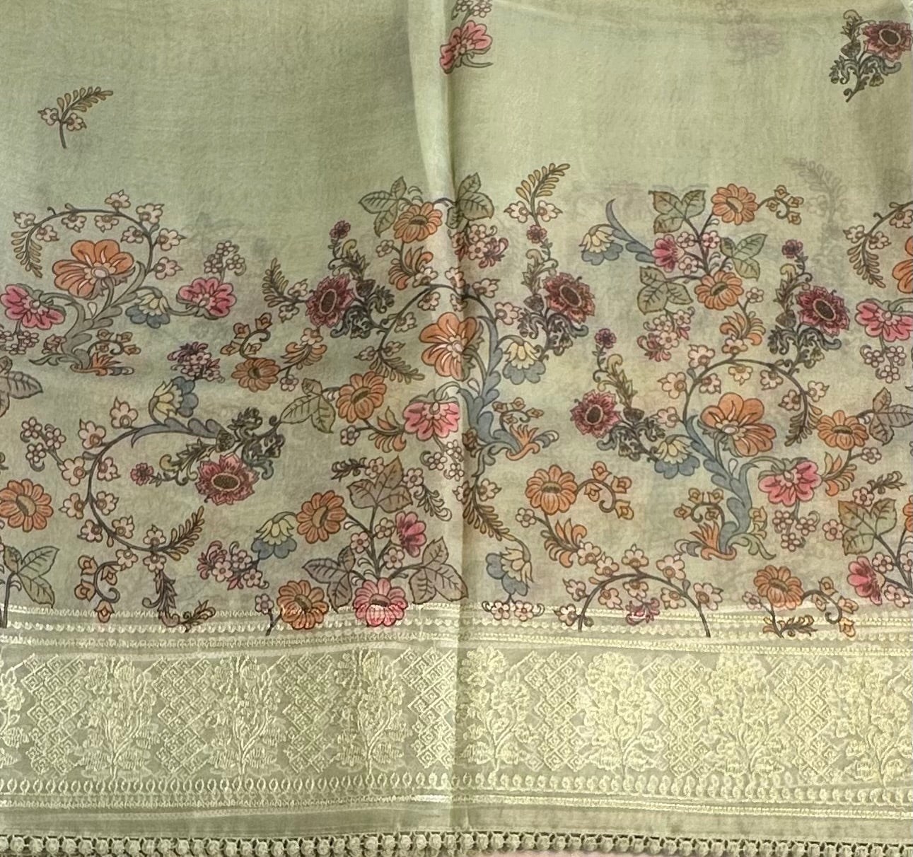 OLIVE GREEN DESIGNER PURE ORGANZA SAREE