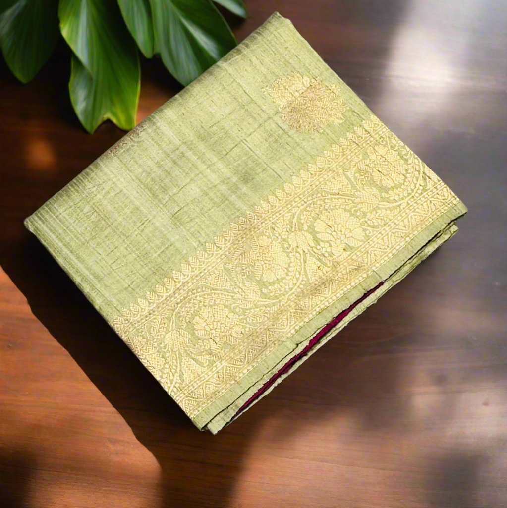 PASTEL GREEN BANARAS PURE RAW SILK SAREE