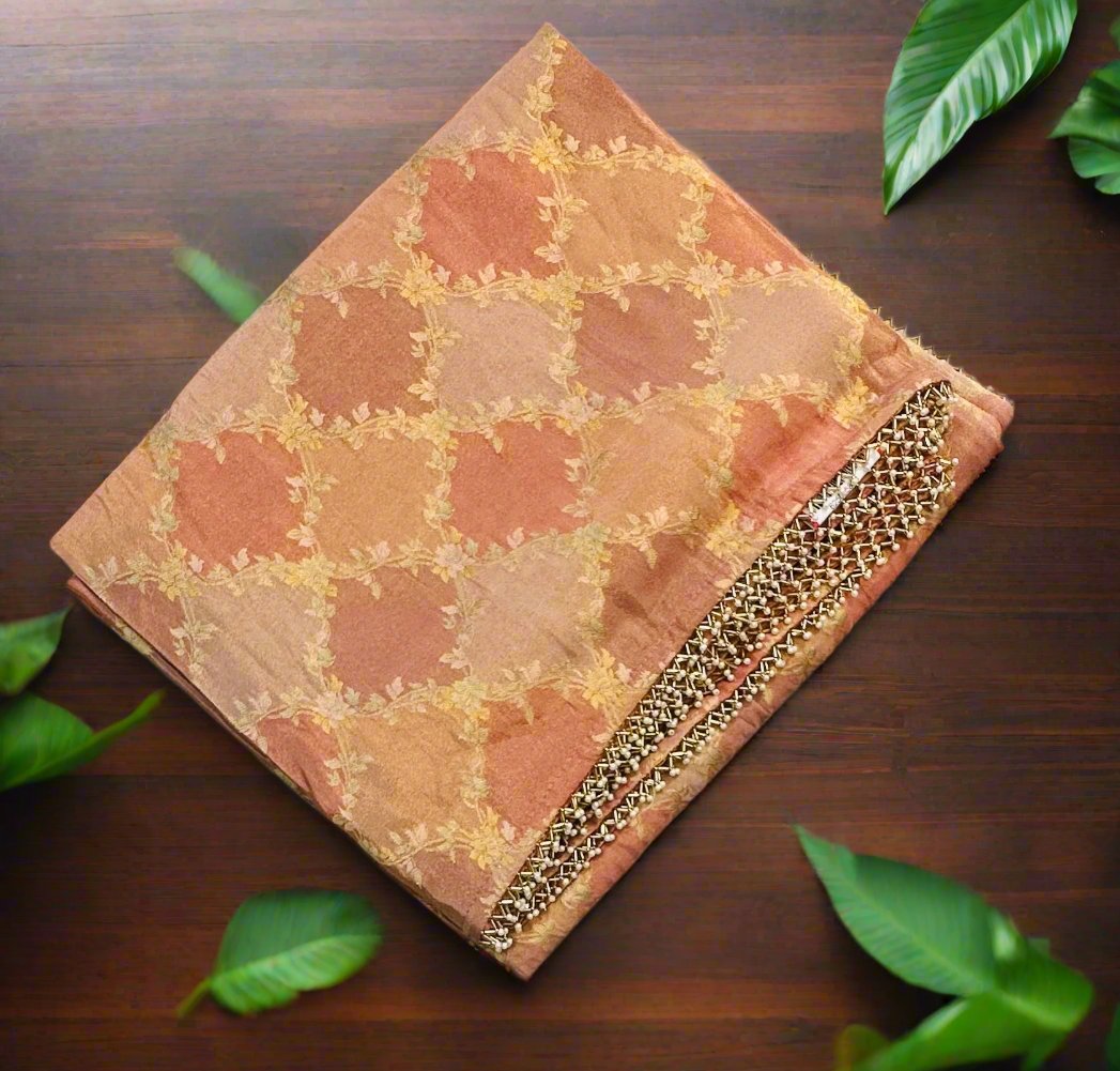 PEACH ND BROWN DESIGNER WORK SAREE