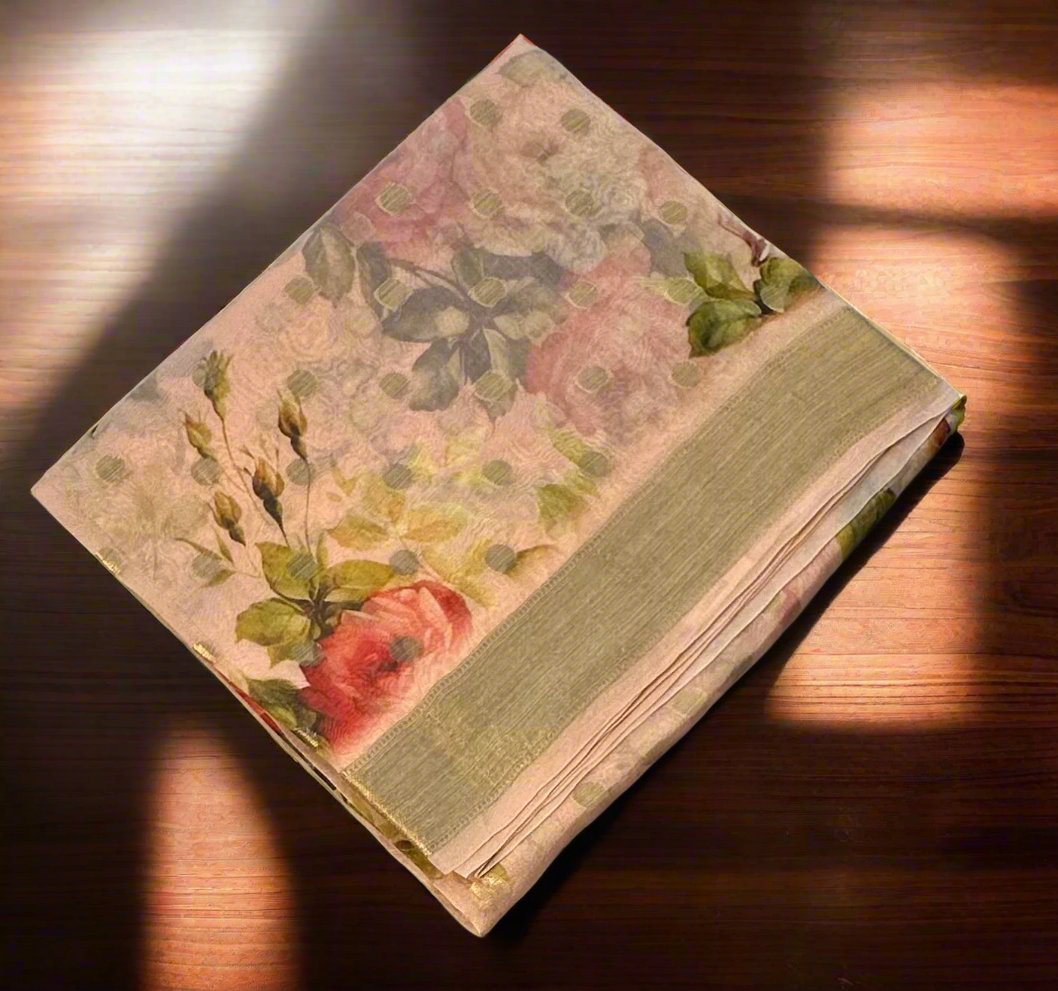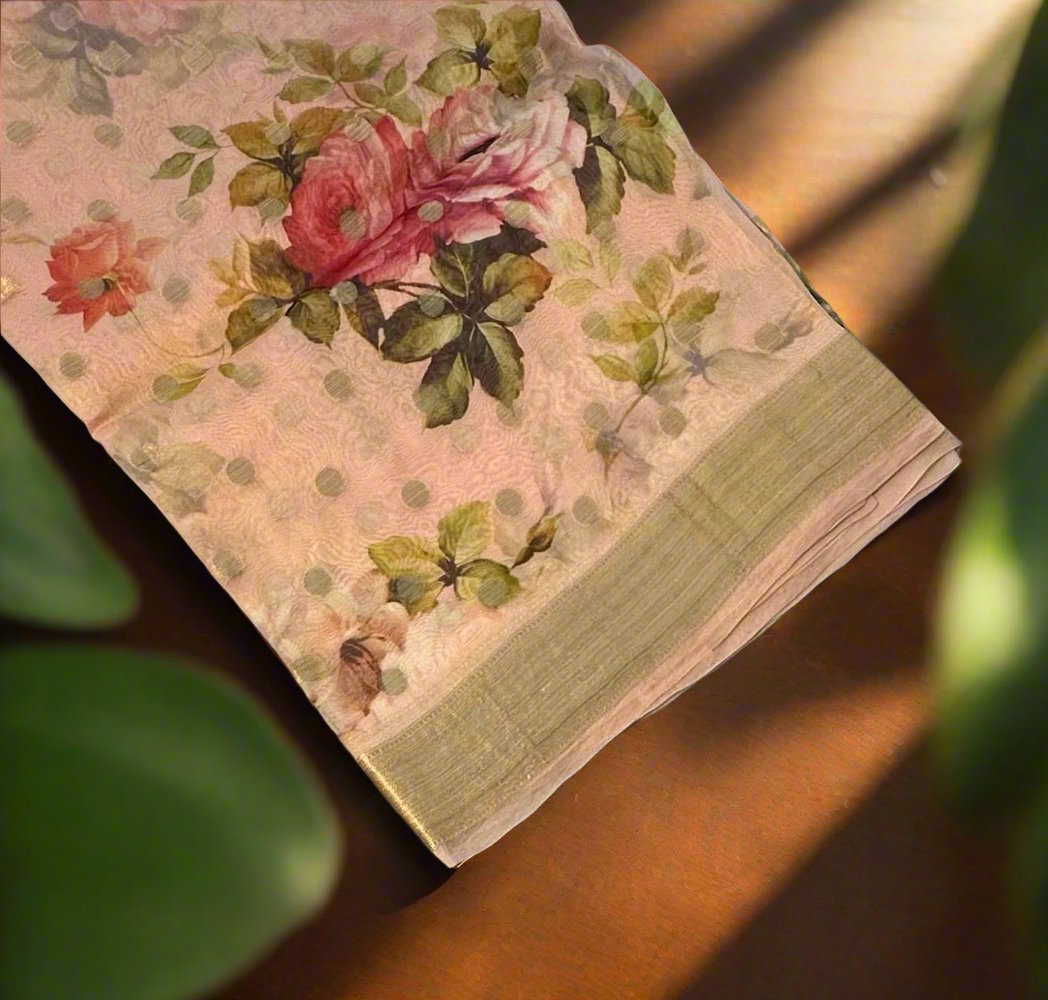 PEACH PURE ORGANZA SAREE